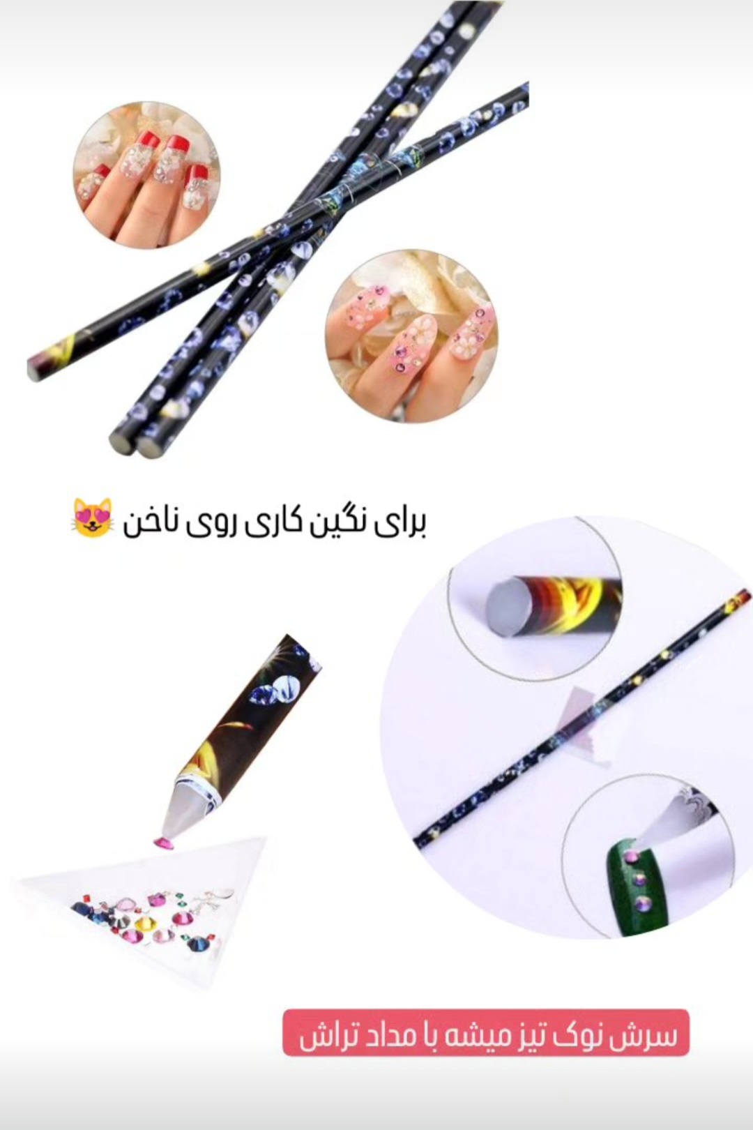 ابتدا قسمت سرمداد را بتراشید و سپس برای جا به جا کردن انواع طرح و سایز نگین حرارتی، نگین های های بدون پایه و پایه دار می تونید استفاده کنید جنس مداد حالت ژله ای چسبناک دار بسیار کاربردی است