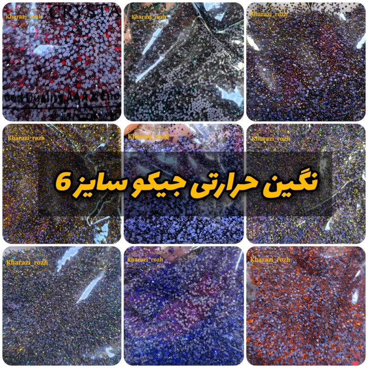 نگین حرارتی جیکو سایز ۶، با درخشندگی بالا و پشت چسبدار صاف حرارتی. مناسب تزیین لباس، کفش، کیف و انواع کارهای هنری. نصب آسان با اتو یا دستگاه و برای اکسسوری با چسب با ماندگاری بالا